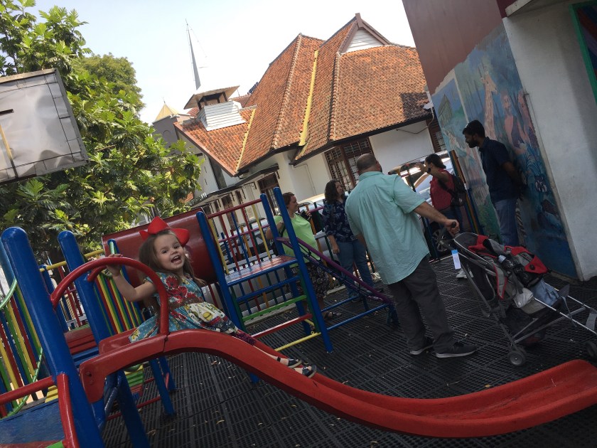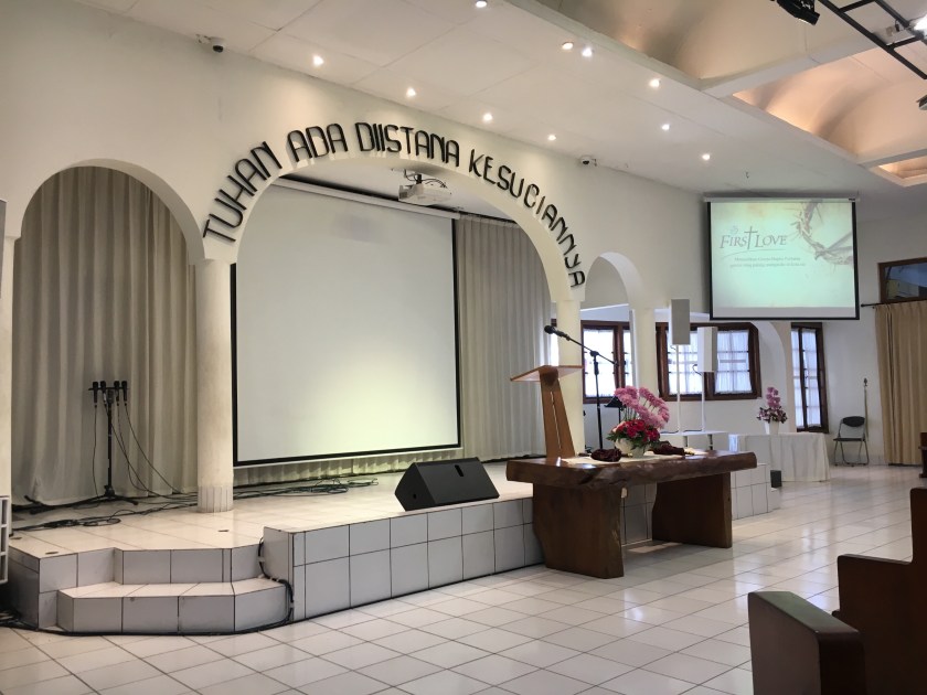 We are so thankful to have two Word-centered choices for Fellowship here in our area.  One is about an hour away in the big city of Bandung.  The service we would attend will be in English (going to take a while to understand Indonesian!).  We were all welcomed and the kids sauntered off to Sunday School happily.  There is also a playground outside for the kids while waiting for the Indonesian service to end!  We are thankful for the immediate familiarity of the music and sanctuary.  We were blessed to hear from a guest speaker relaying activity happening all around.  It was a refreshing time with Him and His people.