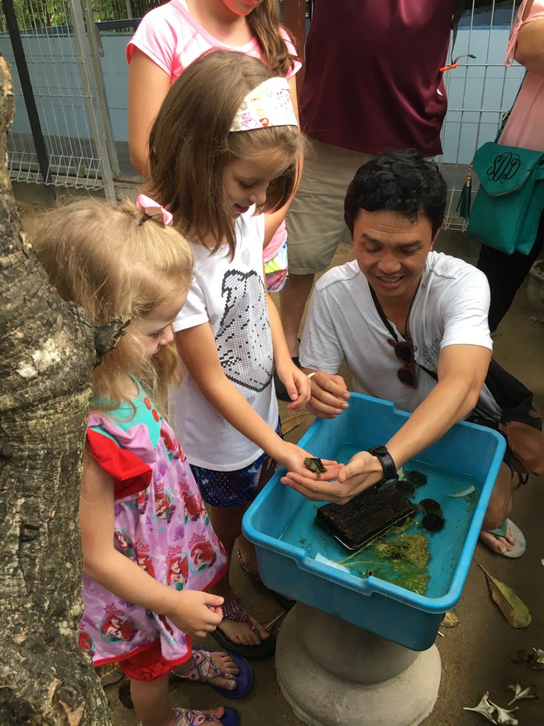 Holding a teeny turtle!